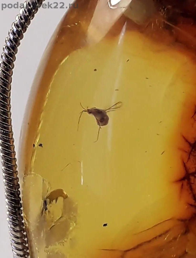 яи-006. Кулон Капля из янтаря с насекомыми.