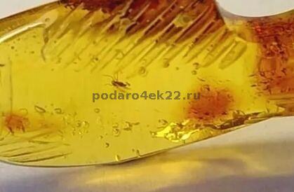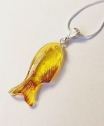 яи-007. Кулон "Рыбка" из янтаря с насекомыми.