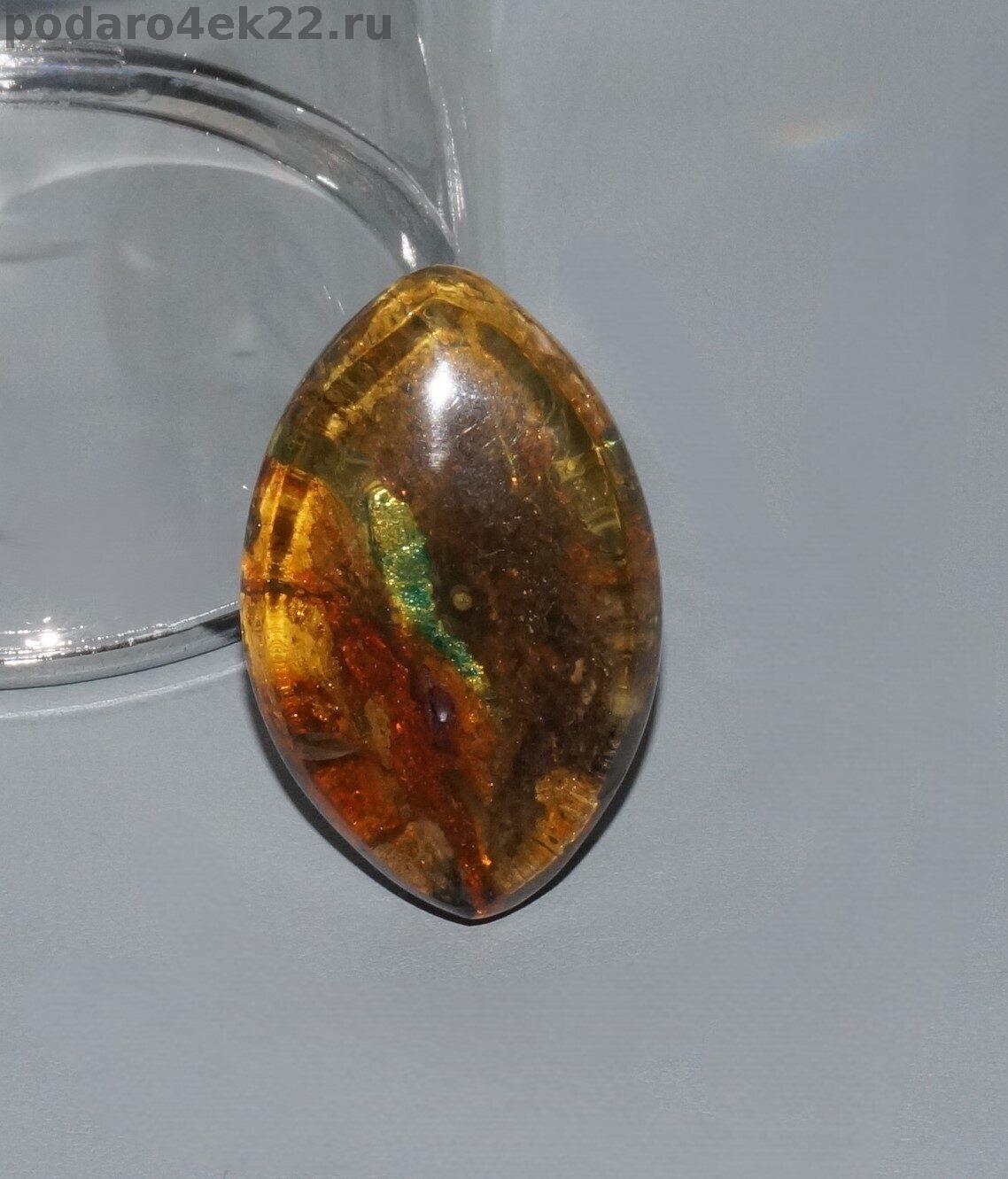 яп-010. Крупное кольцо Лодочка с янтарем с включениями.