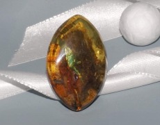 Крупное кольцо Лодочка с натуральным янтарем с включениями (мох и кора, возраст которых около 40 млн.лет). Размер камня 3,8 х 2,4 см, толщина 1,1 см. Размер кольца регулируется. Янтарь природный балтийский.