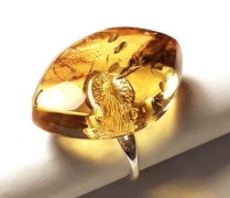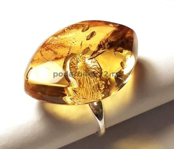 Кольцо Лодочка с натуральным янтарем с включениями (мох и кора, возраст которых около 40 млн.лет). Размер камня 3 х 2 см, толщина 1 см. Размер кольца регулируется. Янтарь природный балтийский. Камень держится крепко, за счет вкрученного в него штырька. В янтаре имеются природные корочки, ямочки, неровности, слои и включения, что подчёркивает подлинность янтаря и его природные особенности. Сейчас очень модно носить такие украшения.