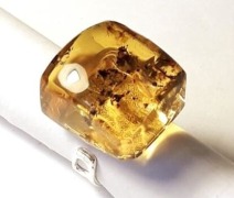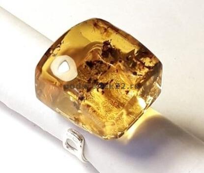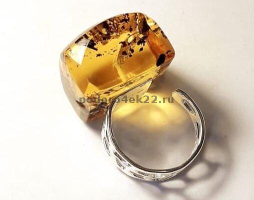 яп-030. Кольцо с квадратным янтарем с включениями.