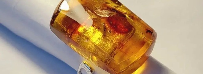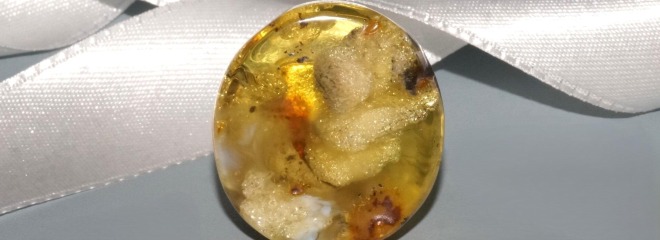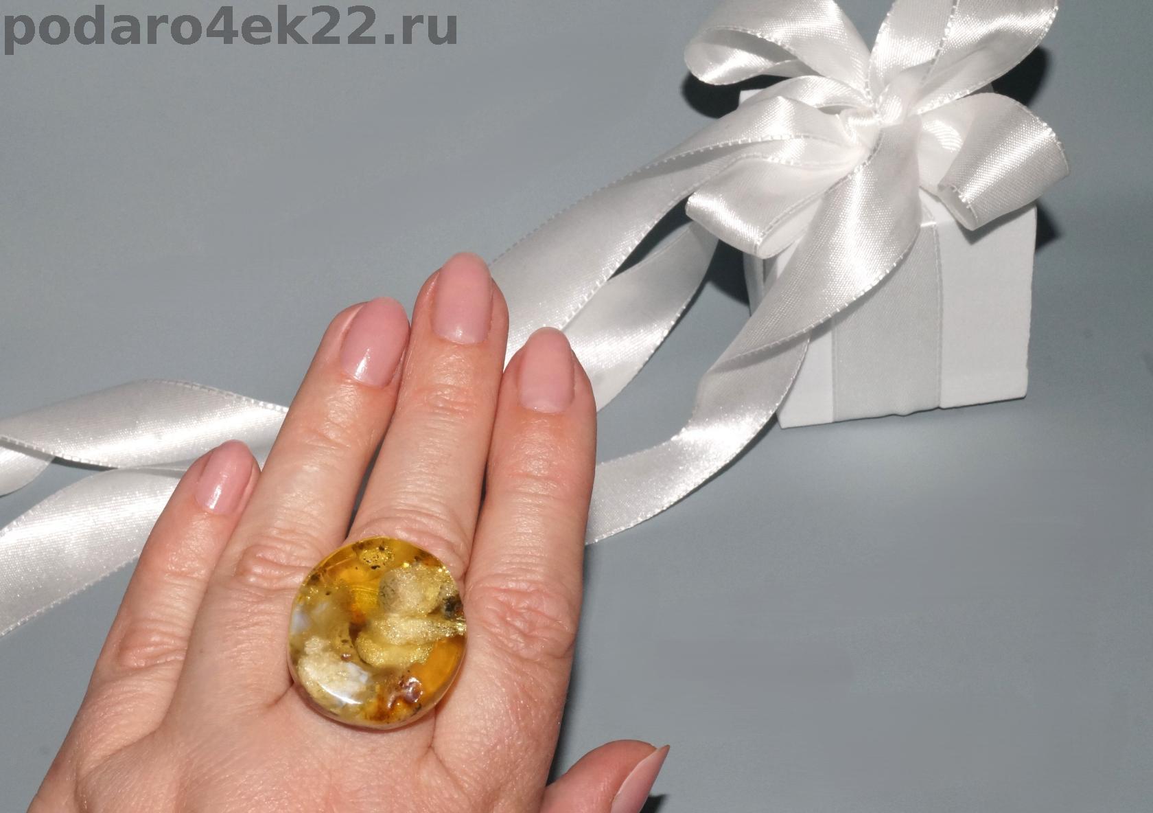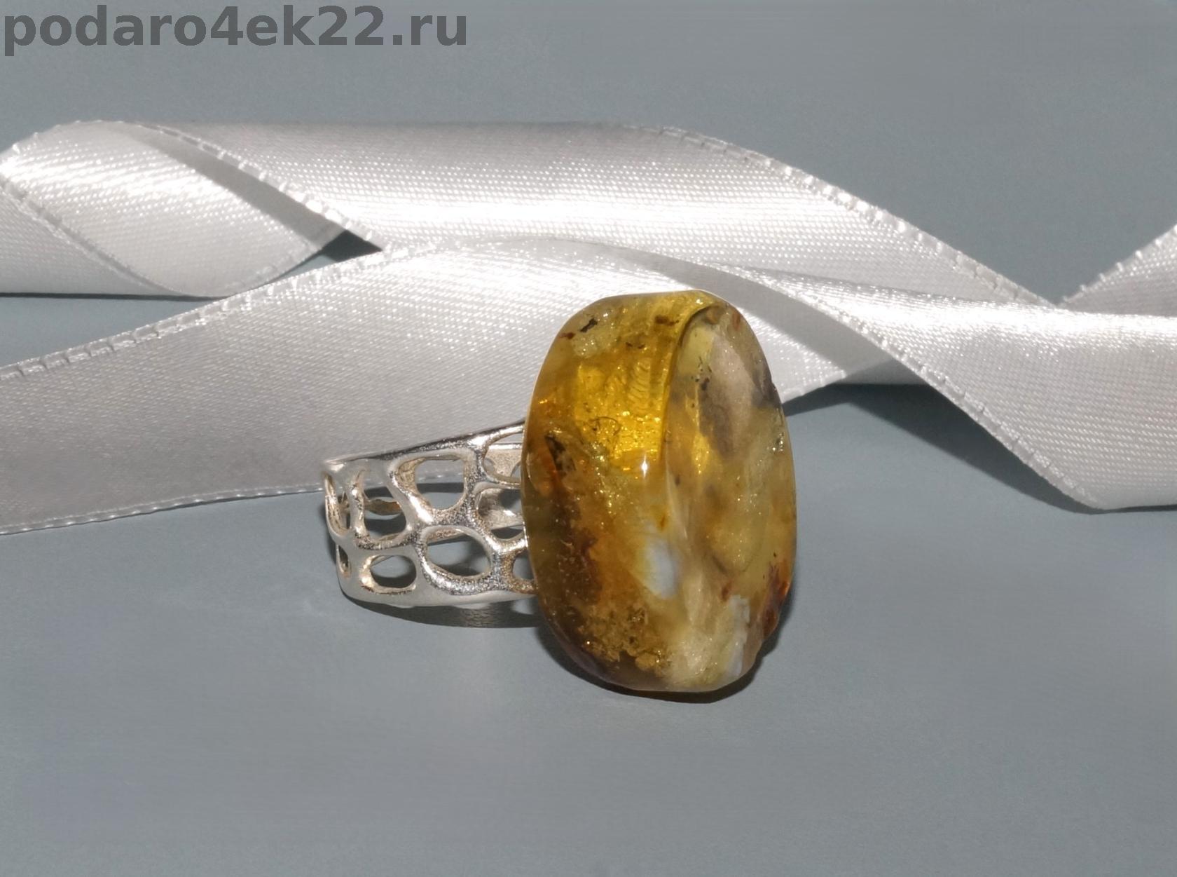 Кольцо "Мед, молоко, сахар" из натурального медового янтаря с дымкой белого янтаря с голубым оттенком и включениями (мох и кора, возраст которых около 40 млн.лет). Размер камня 2,8 х 2,5 см, толщина 1 см. Размер кольца регулируется. Янтарь природный балтийский, с объемным рисунком из пены и включений.