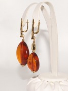 п-0101. Серьги "На удачу" четырёхлистный клевер из янтаря.