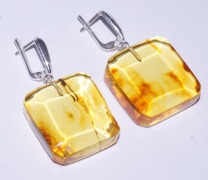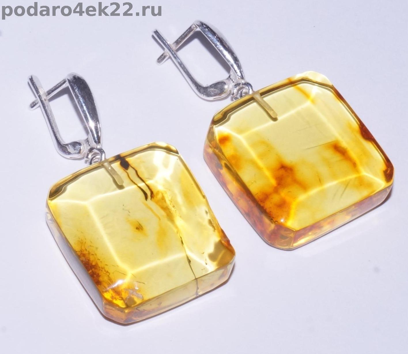 п-0025. Квадратные серьги из солнечного янтаря.