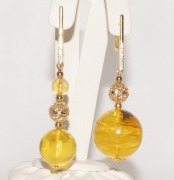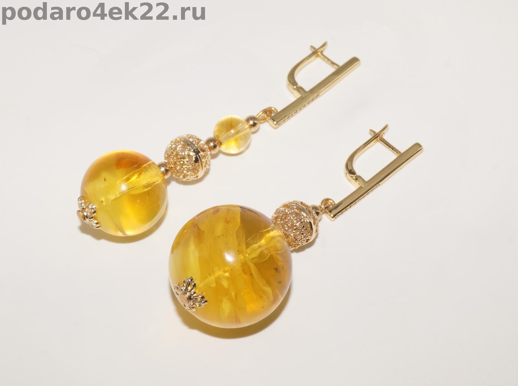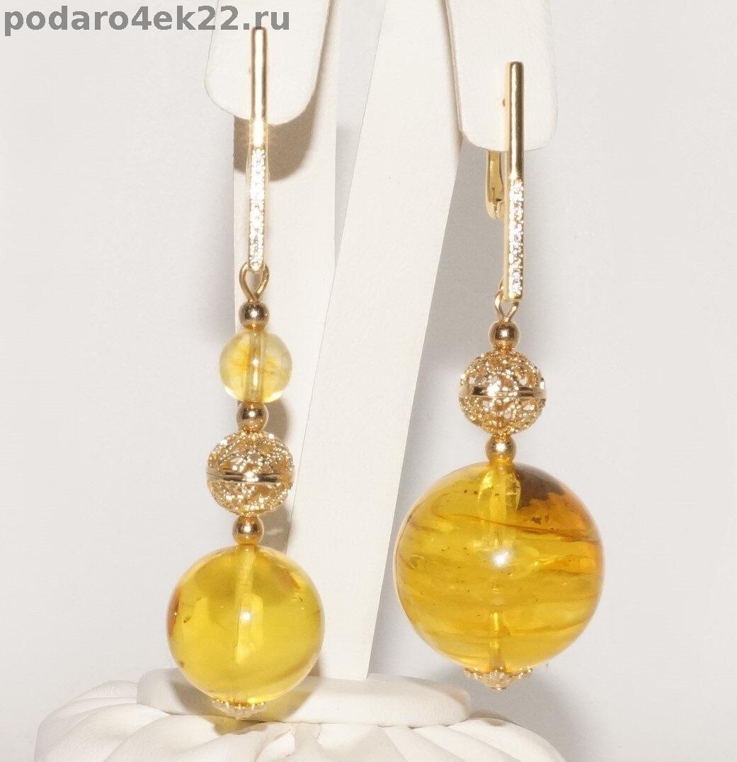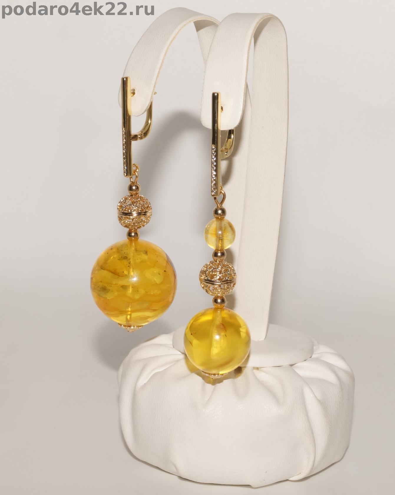 п-0037. Крупные ассиметричные серьги Шары с янтарем.