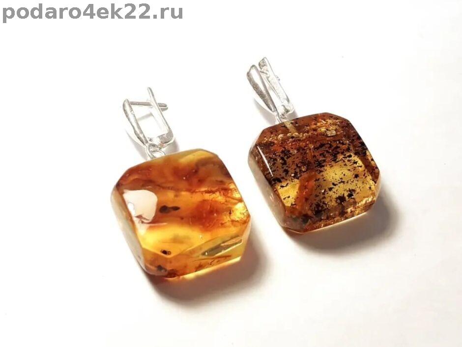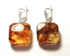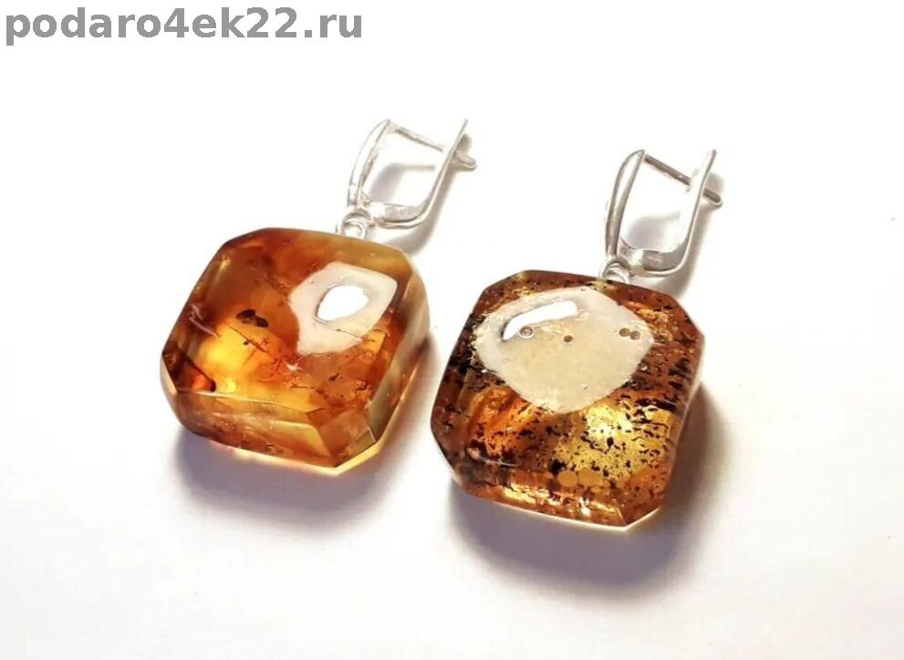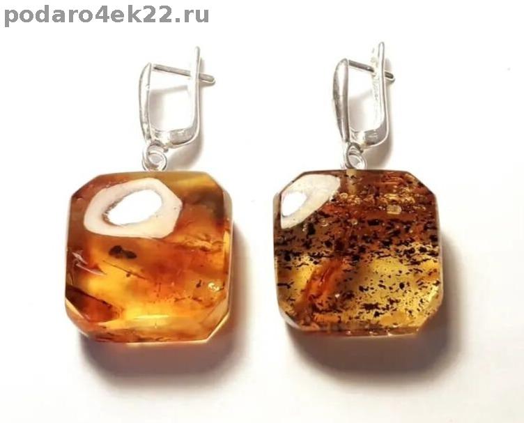 п-0047. Квадратные серьги из янтаря с включениями.