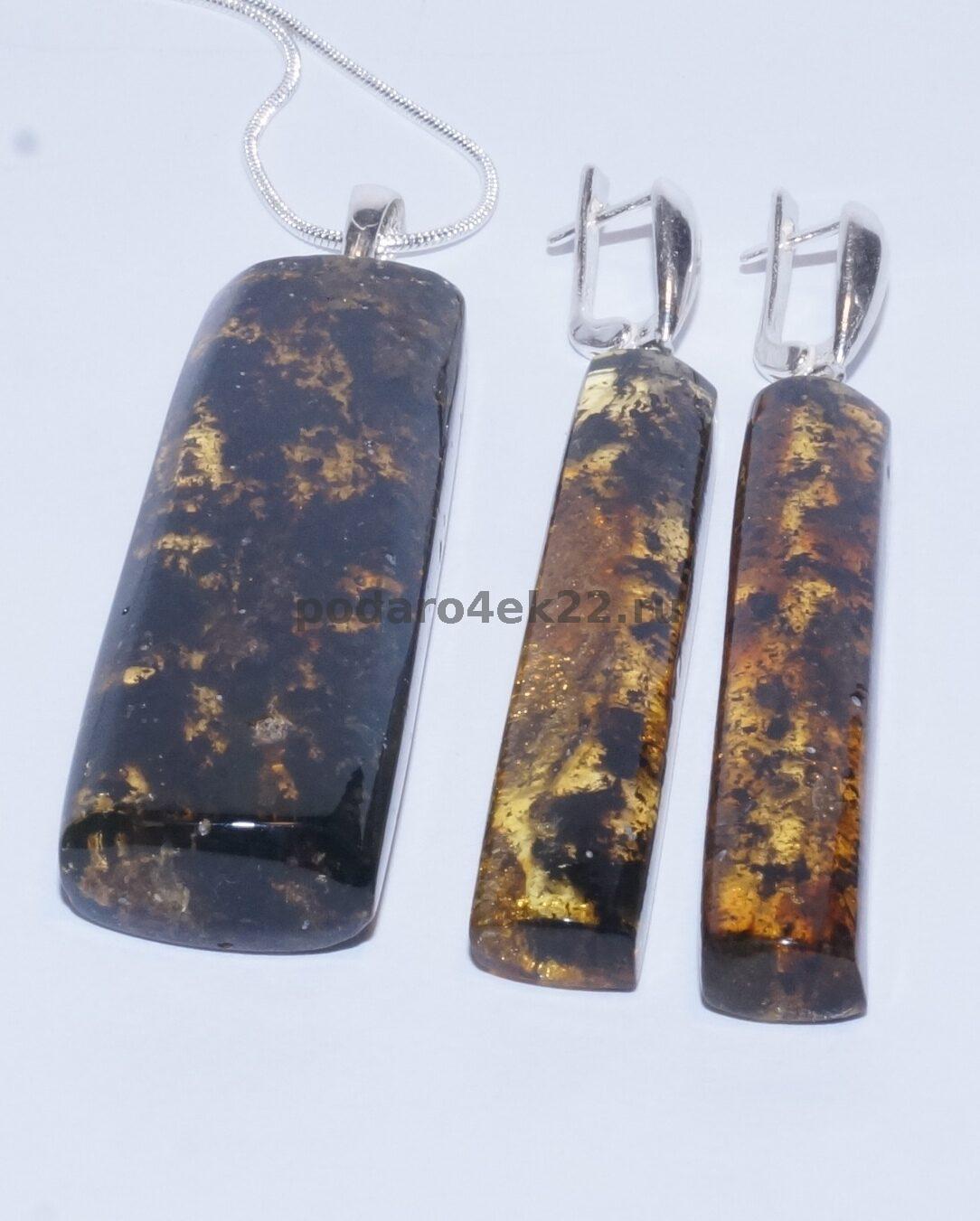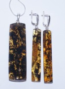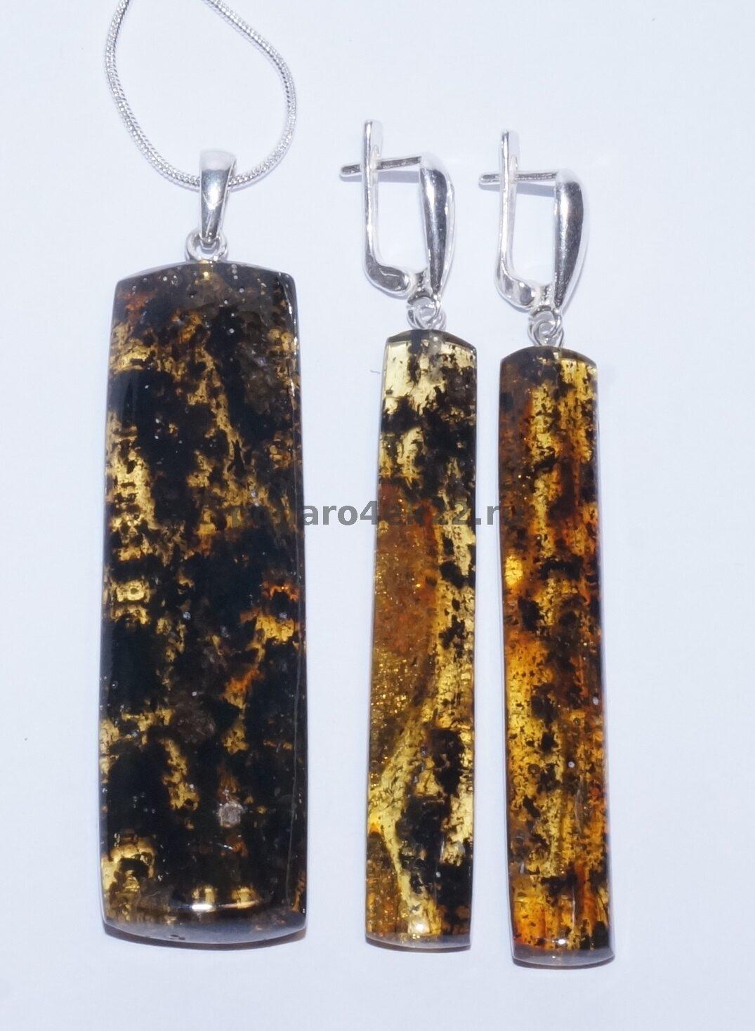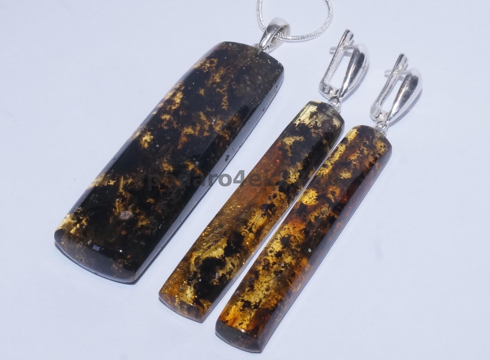 п-0072. Серьги и кулон "Палочки" из янтаря с включениями.