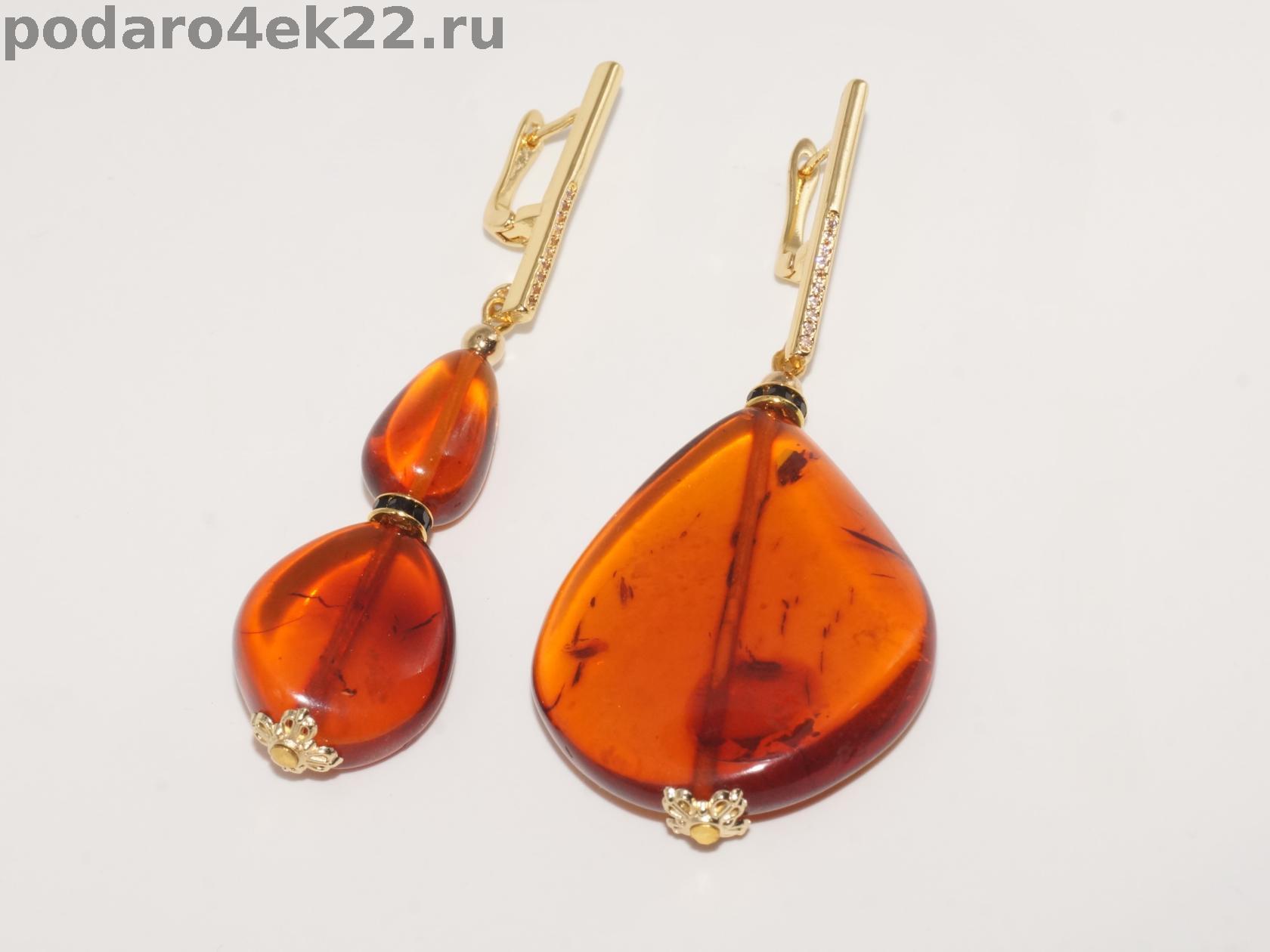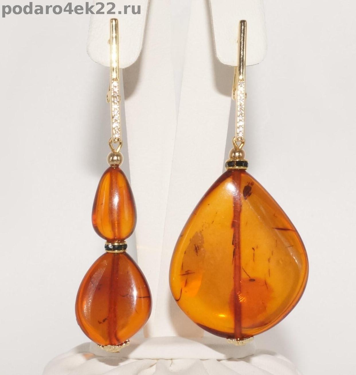 Длинные крупные ассиметричные серьги с натуральным коньячным янтарем природной формы. Серьги длиной 7,5 и 7,3 см. Камни 3,9 х 3,2 см, 2,2 и 1,8 см. Заниженный штифт. Янтарь природный балтийский. Позолота. Авторская ручная работа. Единственный экземпляр.