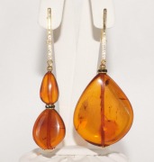 п-0086. Авторские ассиметричные серьги с коньячным янтарем.