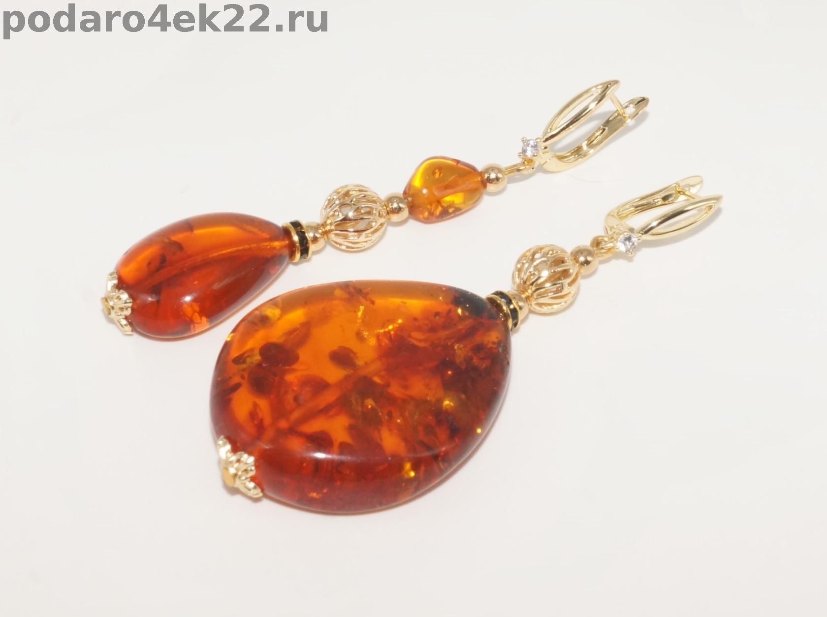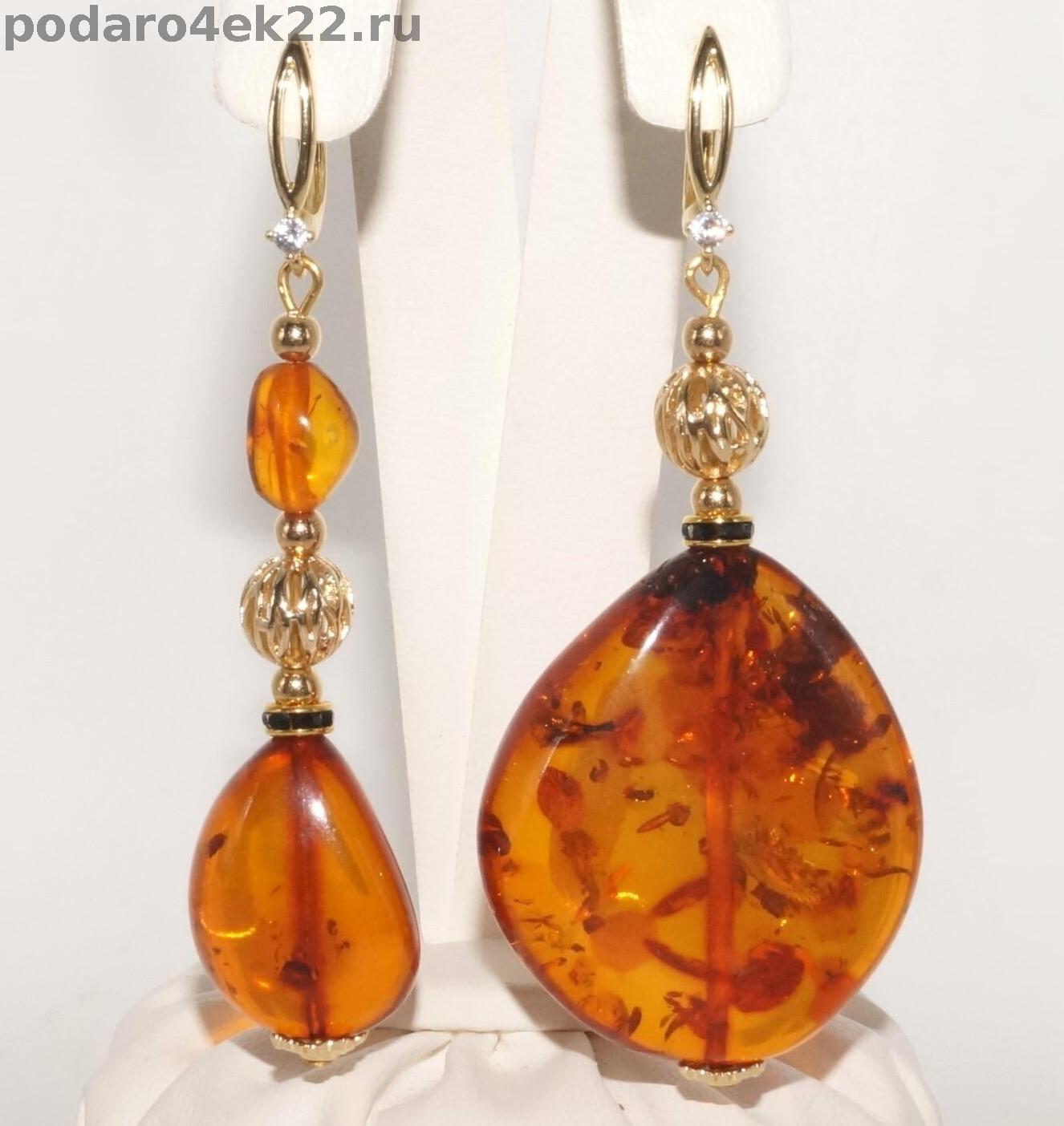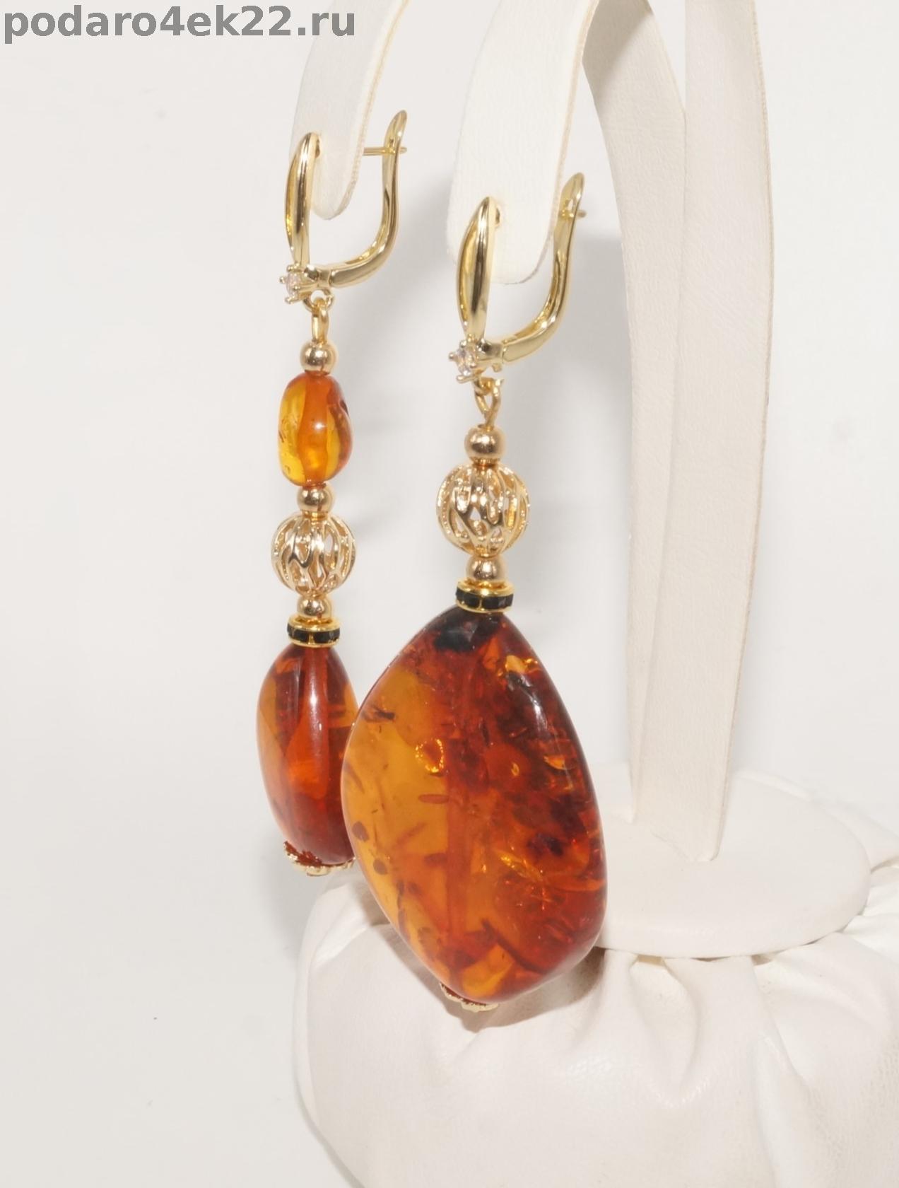 Длинные крупные ассиметричные серьги с натуральным коньячным янтарем природной формы. Серьги длиной 7,7 и 7,5 см. Камни 3,8 х 3,2 см, 2,4 и 1,1 см. Янтарь природный балтийский. Позолота. Авторская ручная работа. Единственный экземпляр.