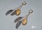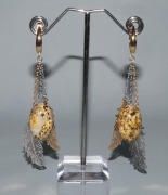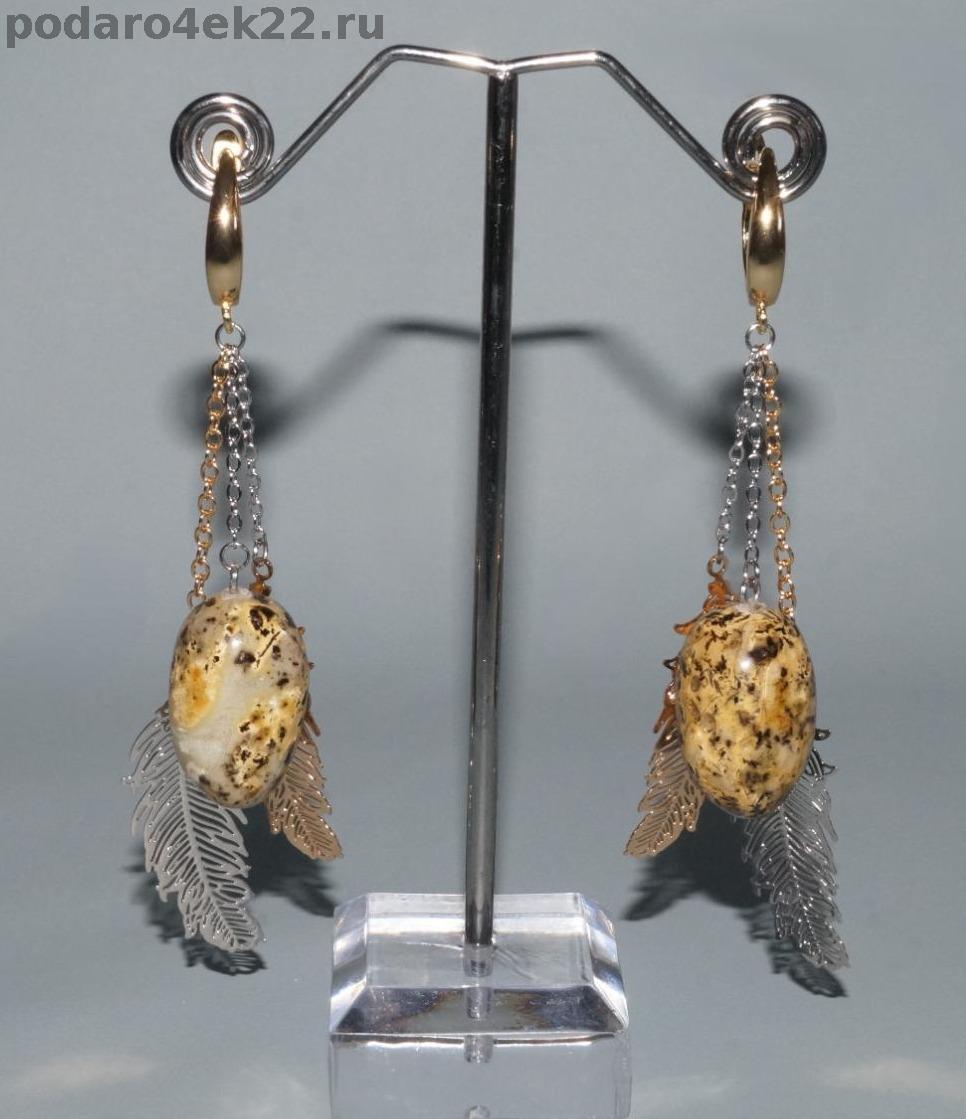п-0090. Длинные серьги "Перепелочка" с перепелиным янтарем.