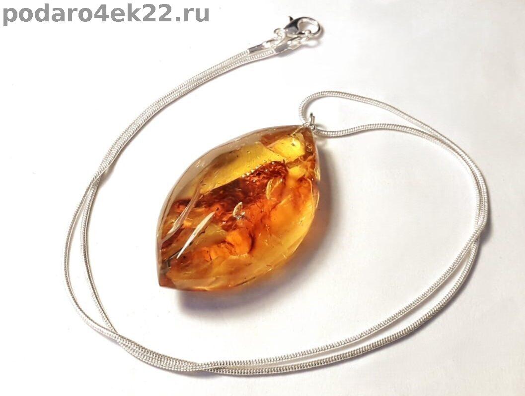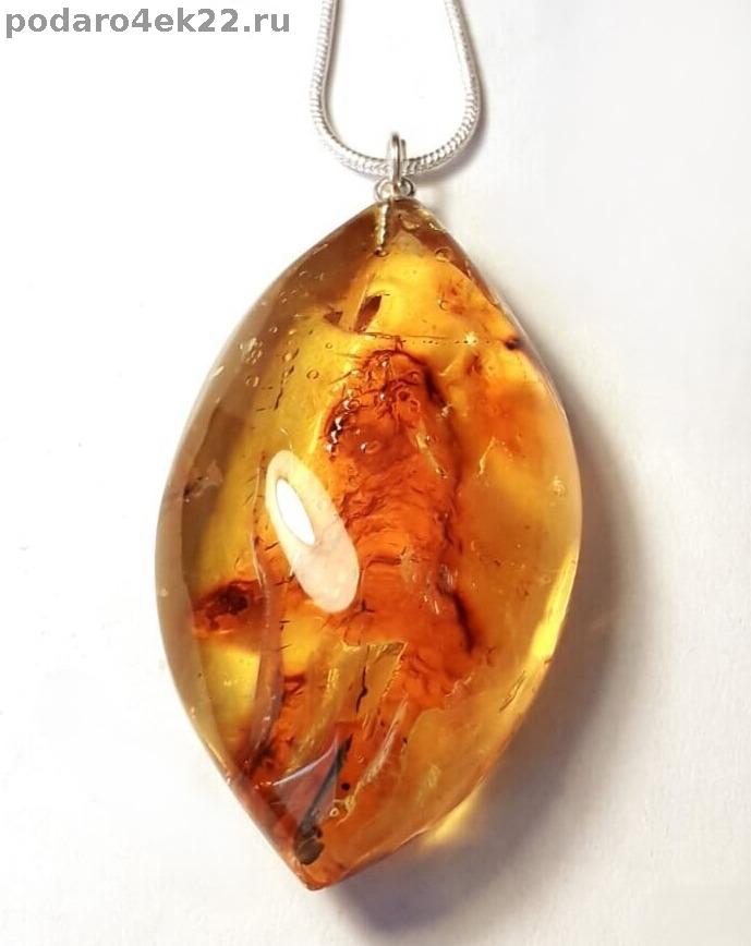 як-007. Кулон "Лодочка" из янтаря с включениями.