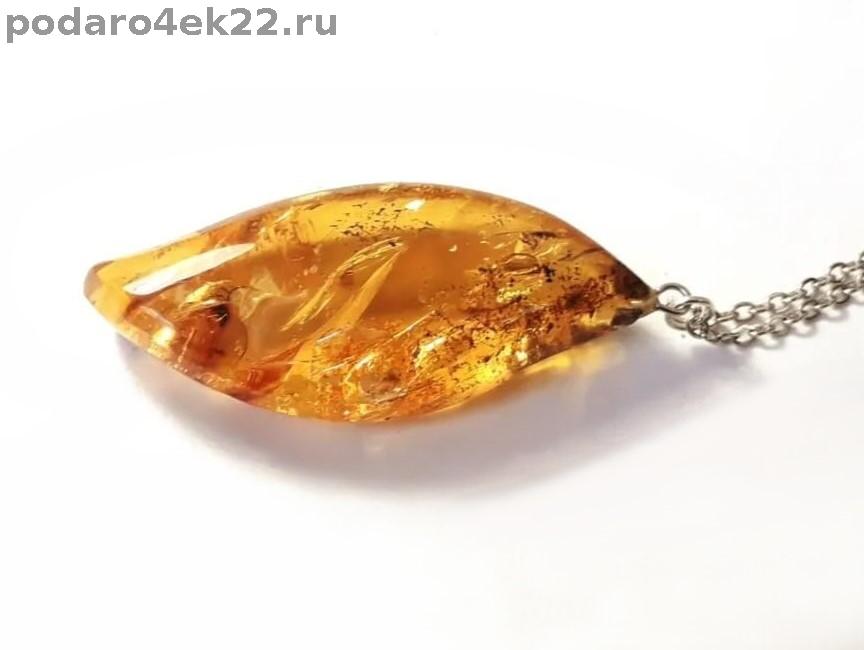 як-008. Крупный кулон "Грация" из янтаря с включениями.