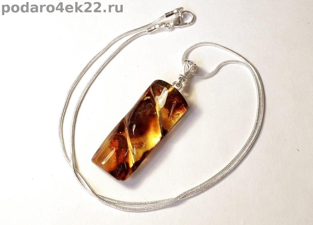 як-017. Кулон резной из янтаря с включениями.