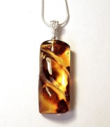 Резной кулон из натурального янтаря с включениями (кора и мох, возраст которых около 40 млн.лет). Длина кулона 5,2 см. Размер камня 3,8 х 1,6 см, толщина 8 мм. Янтарь природный балтийский. Единственный экземпляр.
