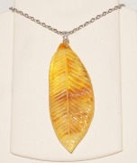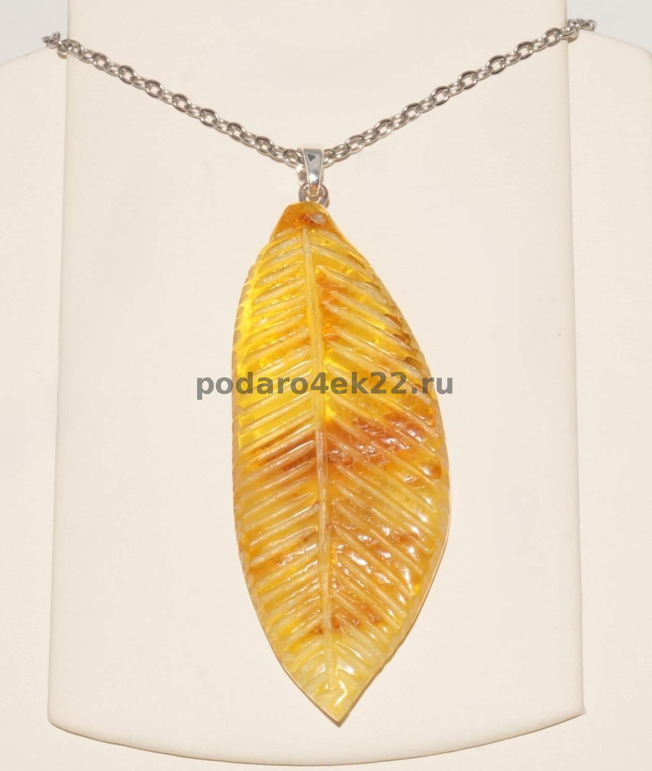 як-019. Крупный кулон Лист из янтаря с включениями.