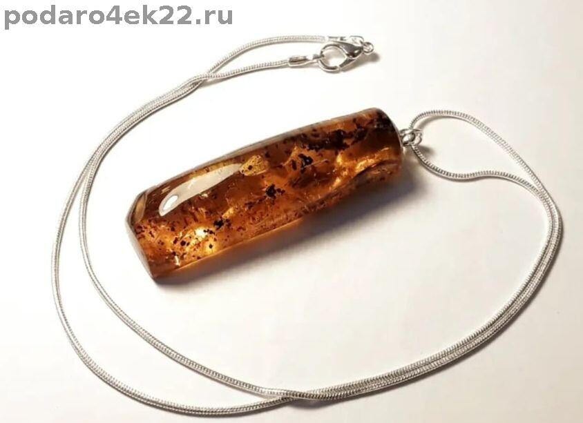 як-030. Длинный кулон "Палочка" из янтаря с включениями.
