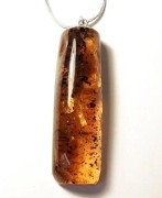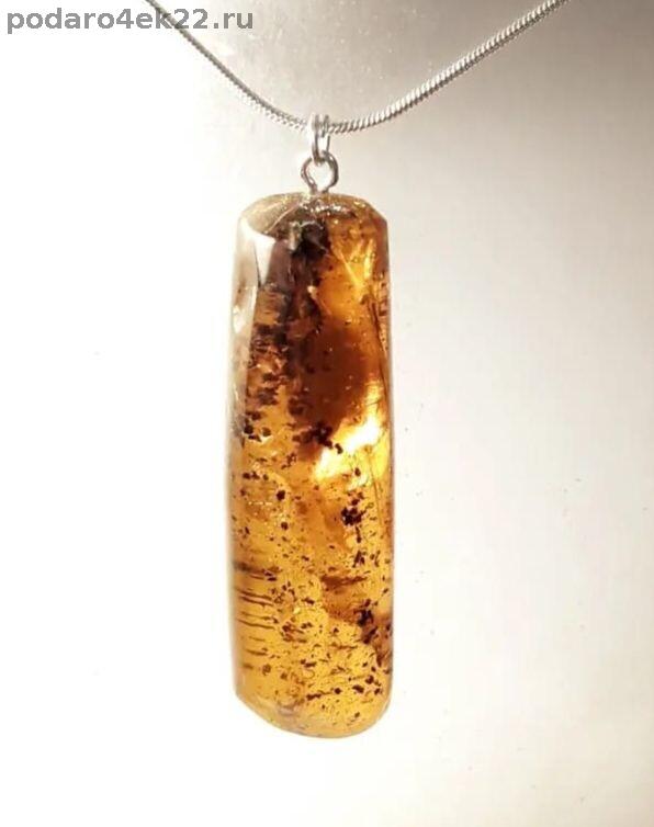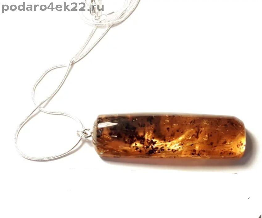 Длинный кулон "Палочка" из натурального янтаря с включениями (кора и мох, возраст которых около 40 млн.лет.) Длина 6 см. Размер камня 5,2 х 1,5 см, толщина 1 см. Янтарь природный балтийский. Фурнитура и цепь посеребрение 925 пробы.