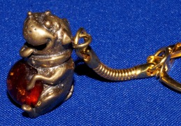 Брелок лягушка с янтарем.