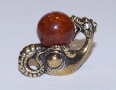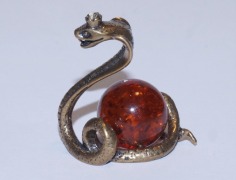 сл-009. Статуэтка "Змея с яйцом" из латуни с янтарём.