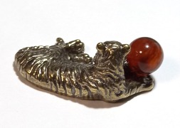 Бронзовая собачка с натуральным янтарем.
