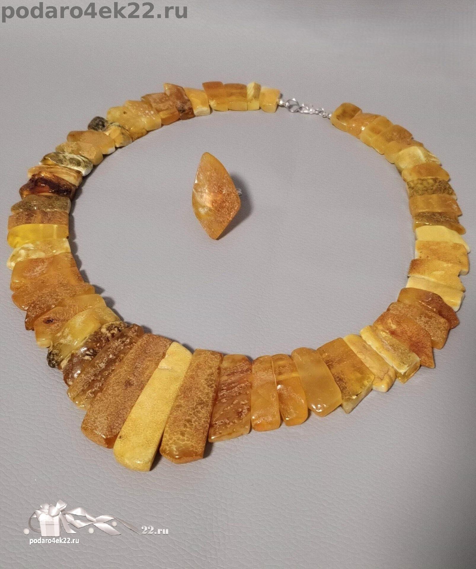 б-046. Колье и кольцо из лечебного королевского янтаря.