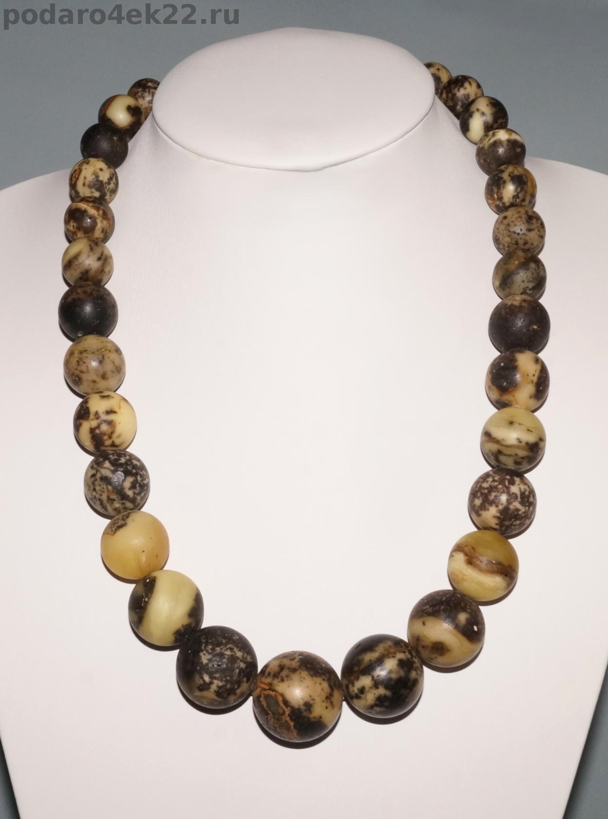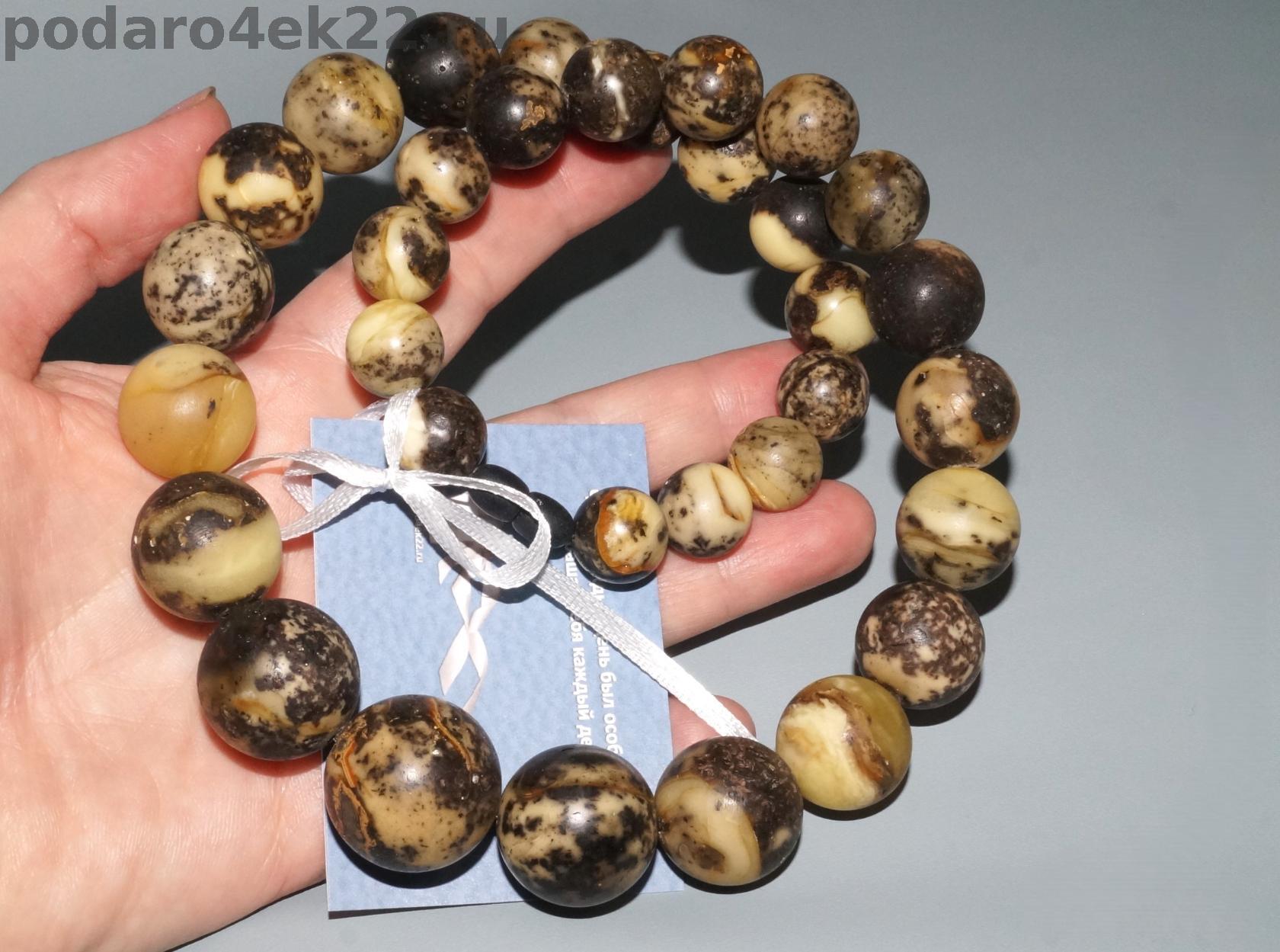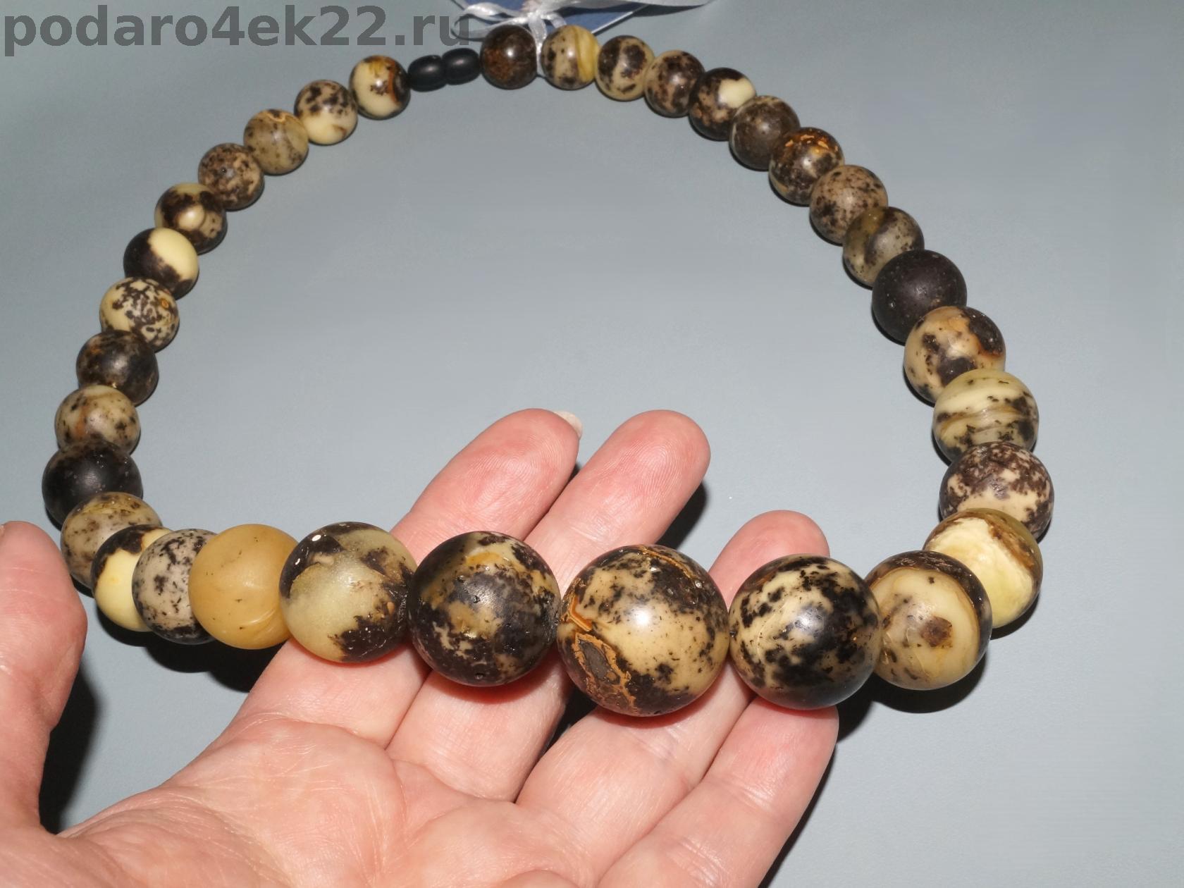 б-013. Крупные бусы Матовые шарики из перепелиного янтаря.
