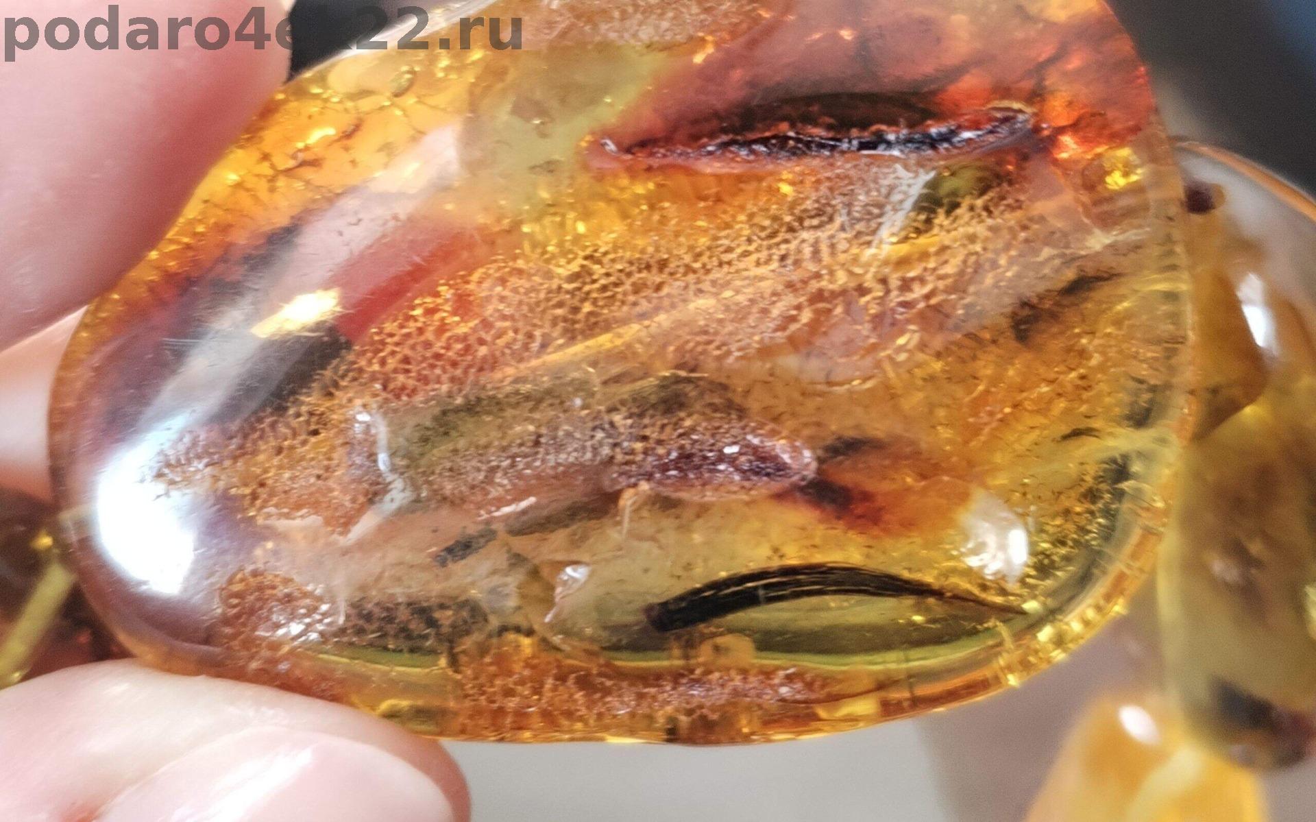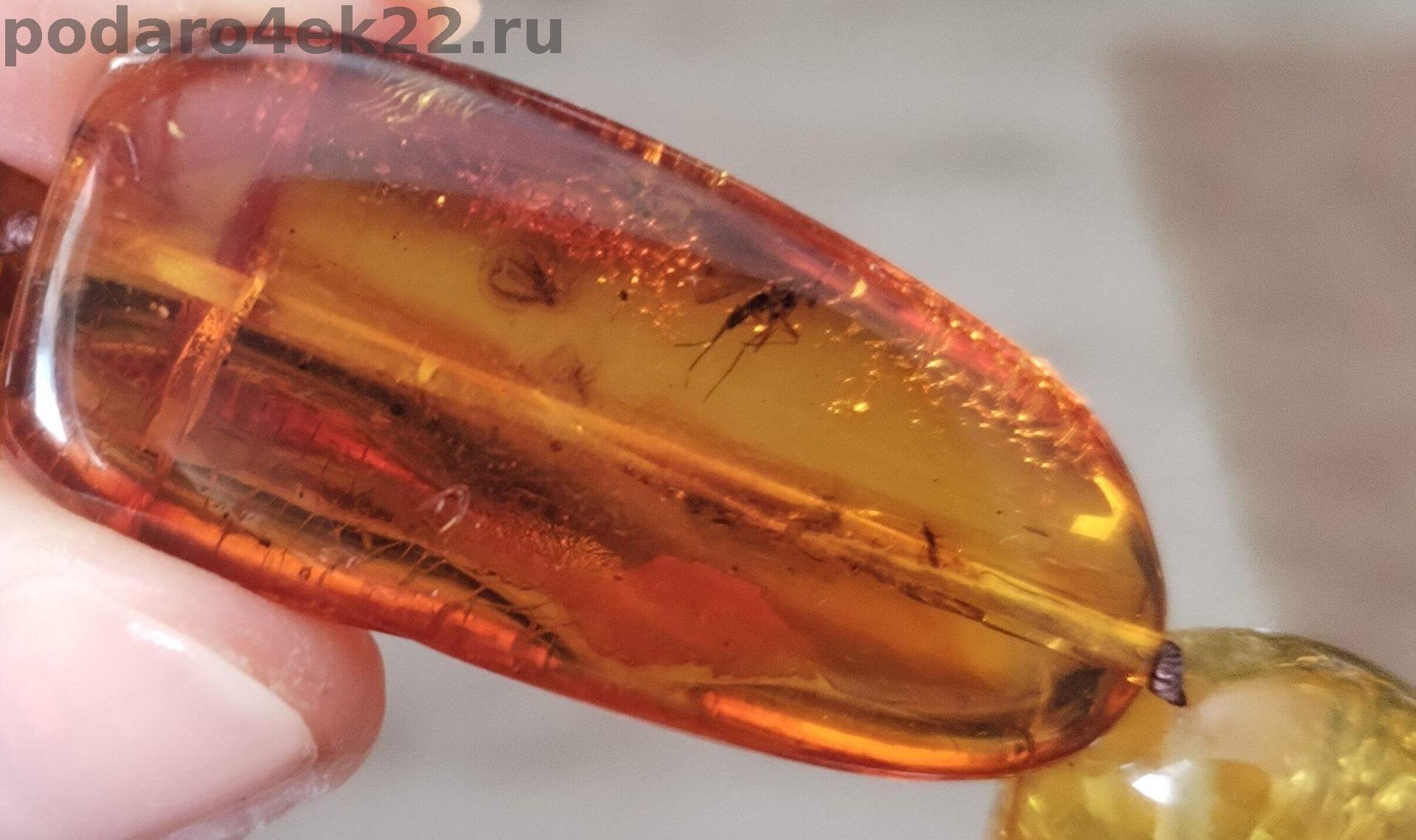 В янтаре имеются природные корочки, ямочки, неровности, слои и включения, что подчёркивает подлинность янтаря и его природные особенности. Сейчас очень модно носить такие украшения.