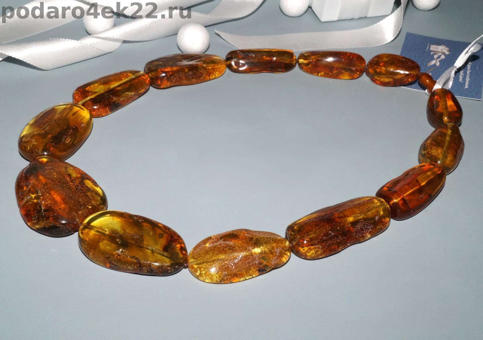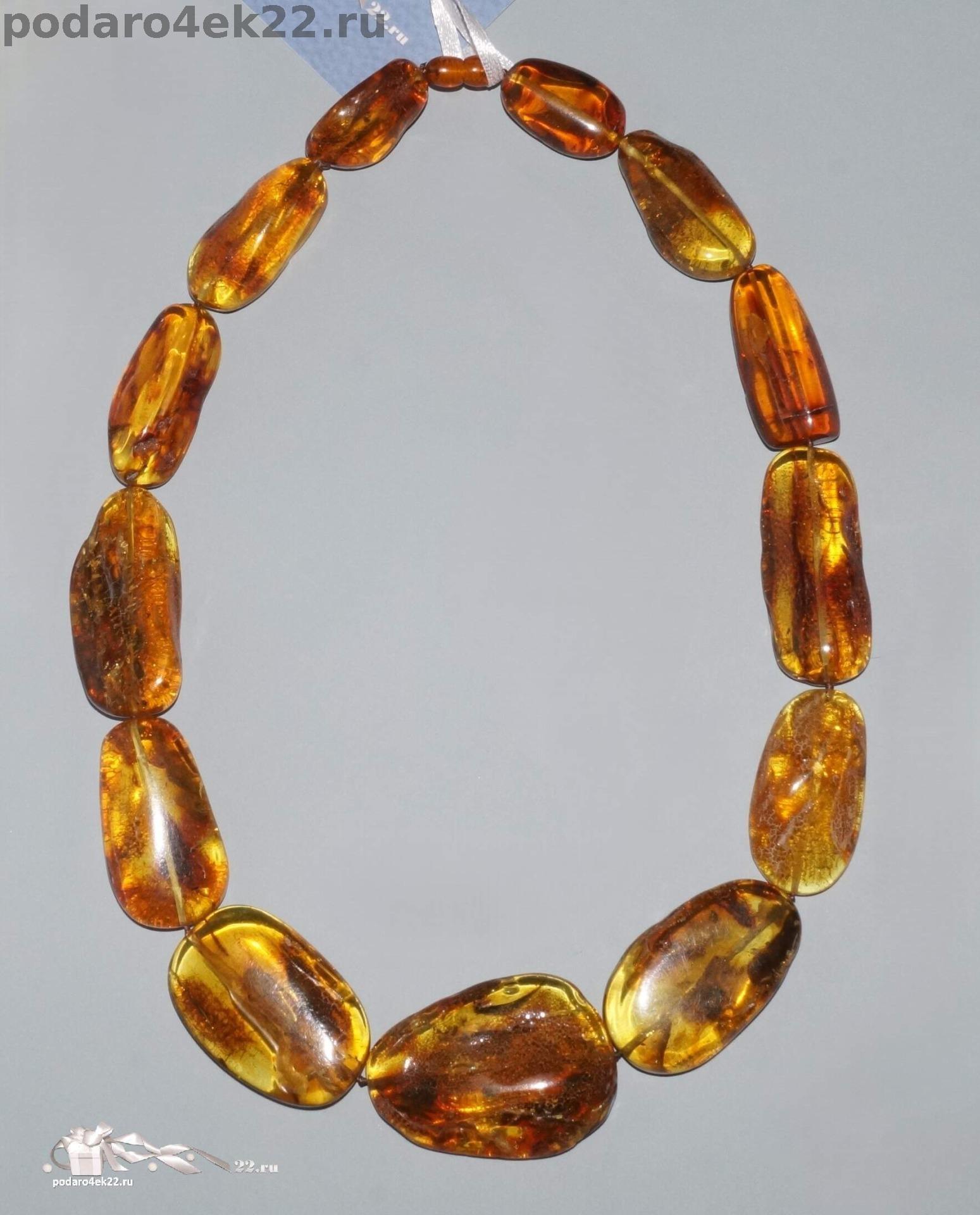 Б-029-3. Очень крупные бусы из янтаря с инклюзами.