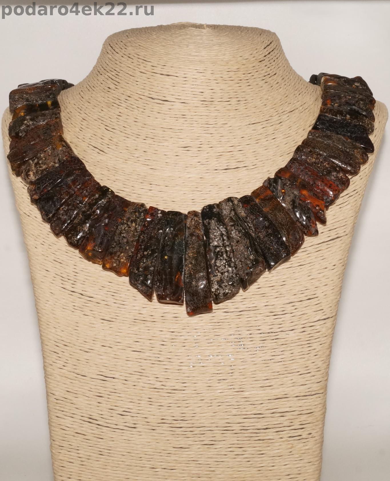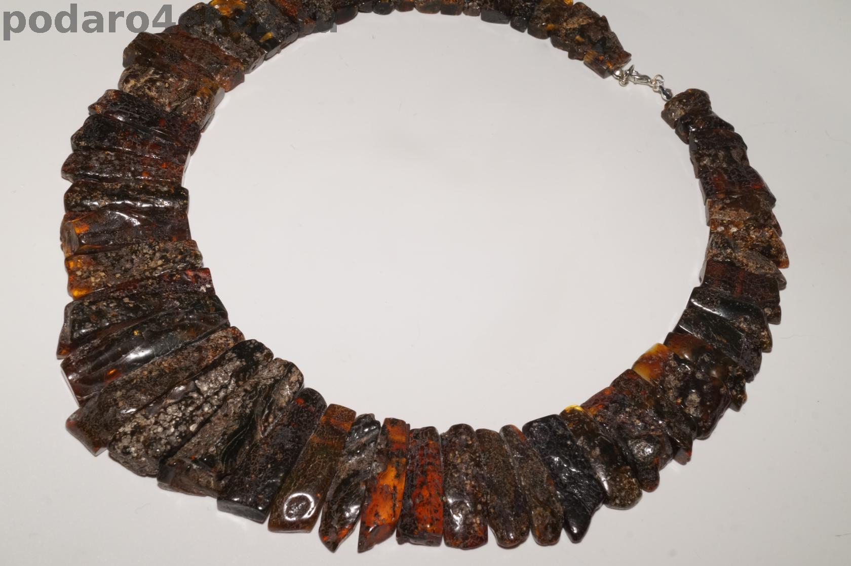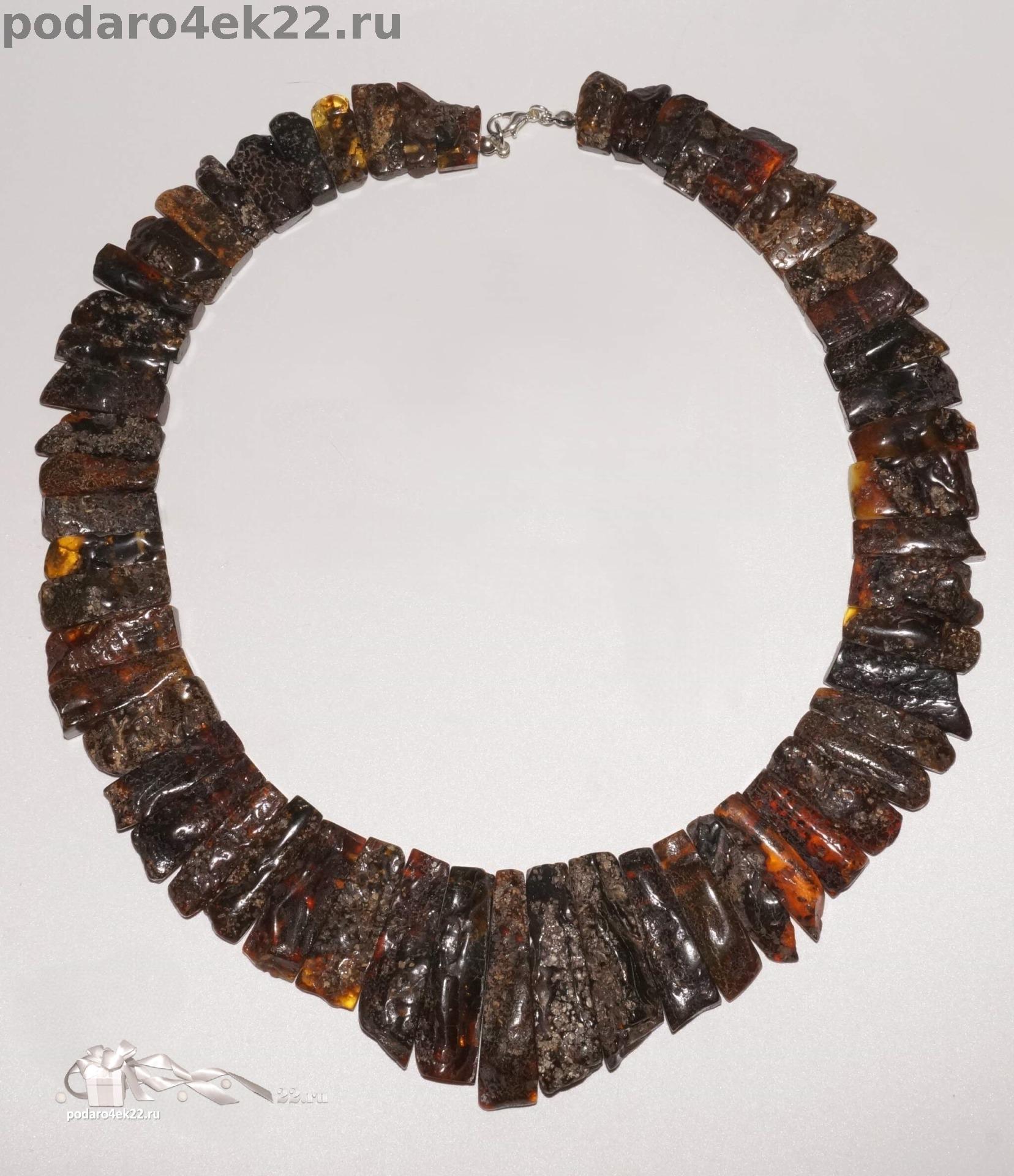 Крупное камнерезное колье из лечебного дикого черного натурального янтаря природной формы с включениями (кора и мох, возраст которых около 40 млн. лет). Длина колье 49-57 см. Центральный камень 4,8 см. Камни от 2 до 4,8 см. Вес 94,3 гр. Ручная работа. Янтарь природный балтийский необработанный. Сохранена природная корочка, янтарная кислота хорошо впитывается через кожу.