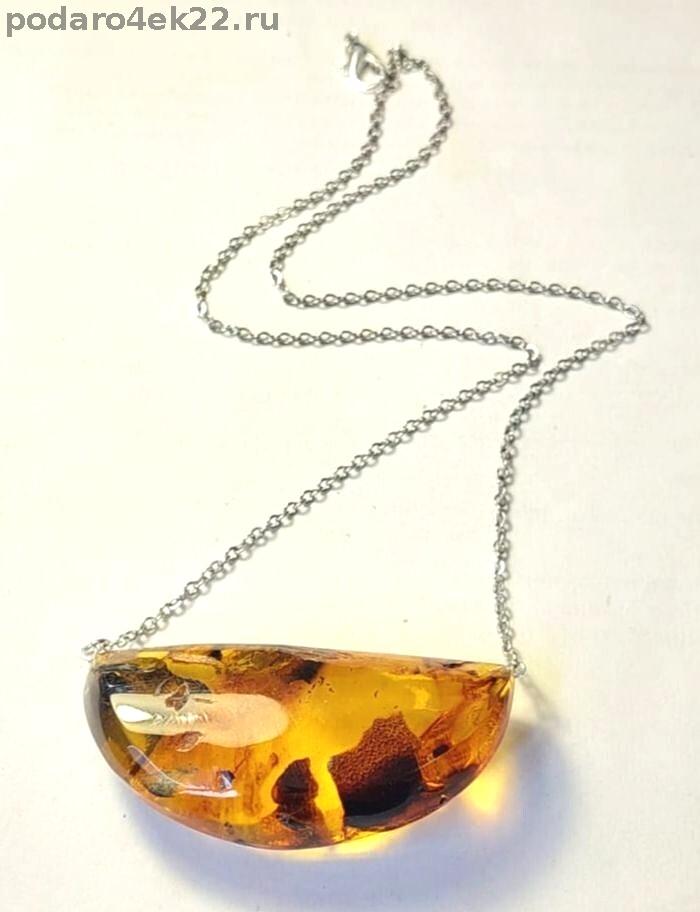 б-107. Колье - кулон Лодочка из янтаря с включениями.