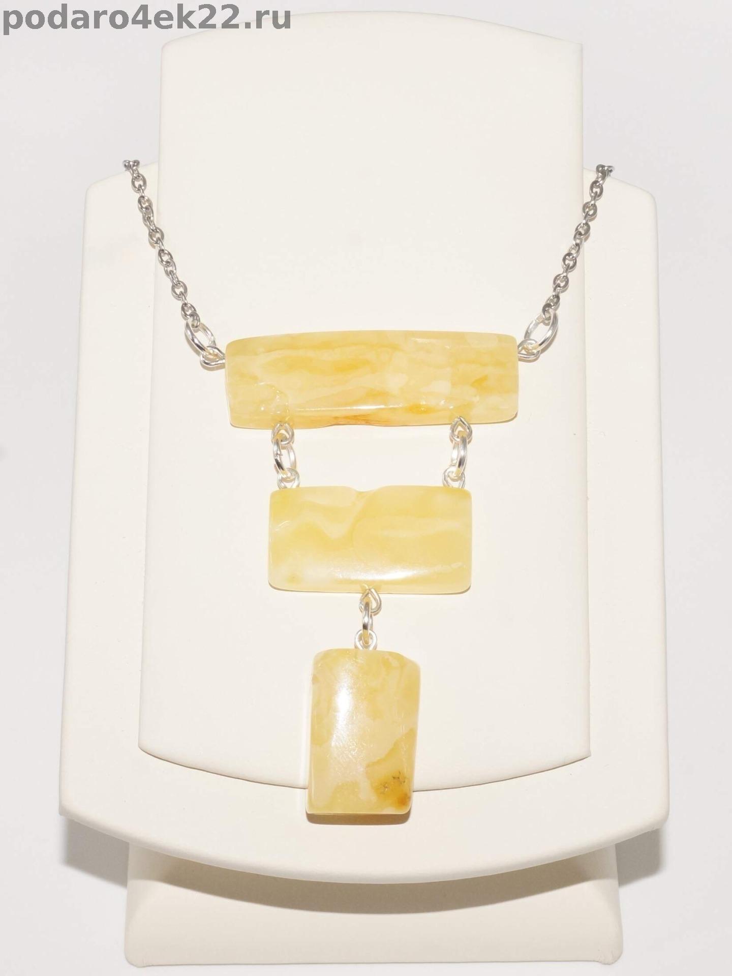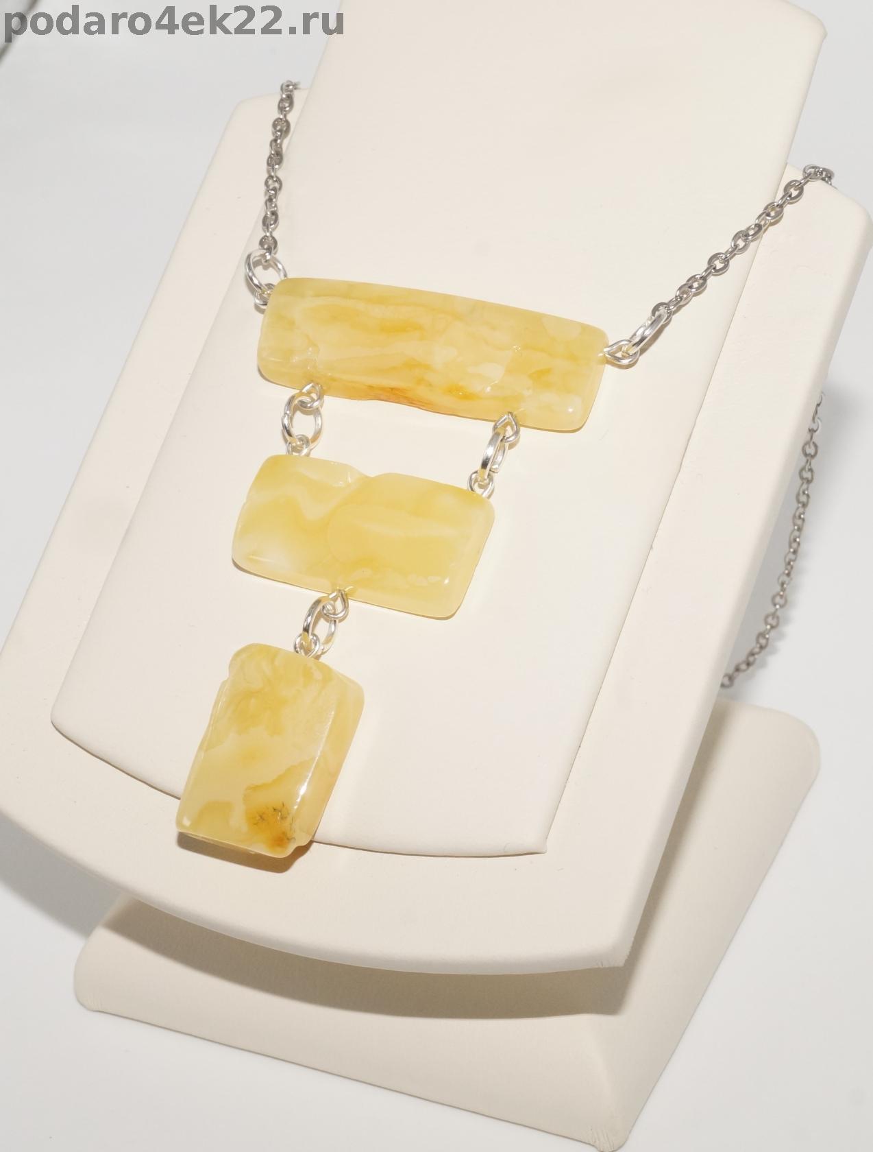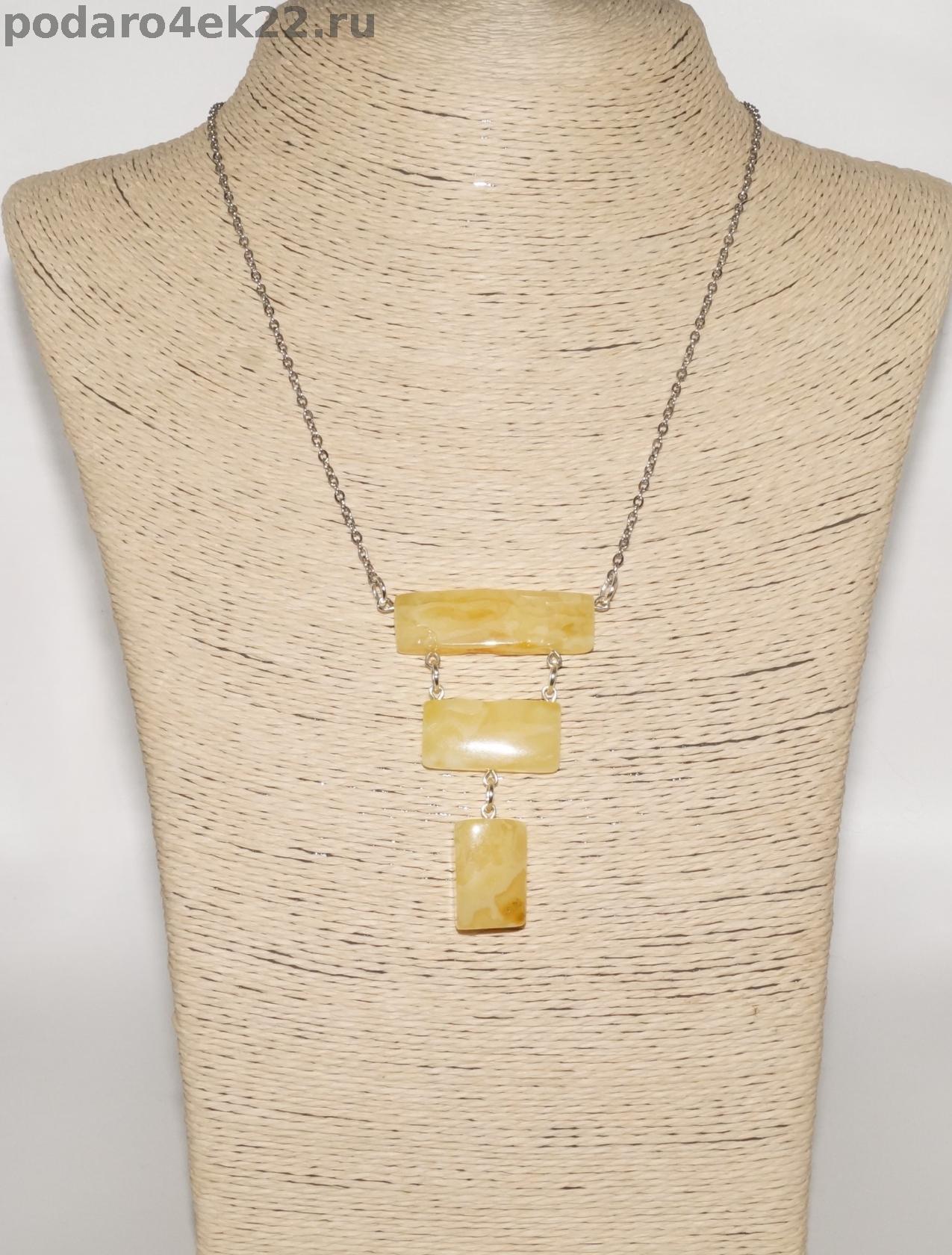 Колье из натурального королевского пейзажного янтаря с природными ямочками на цепочке. Длина кулона 6,2 см. Размер камней 2, 2,5 и 3,7 см. Длина колье 51 см. Янтарь природный балтийский. В янтаре имеются природные корочки, ямочки, неровности и включения, что подчёркивает подлинность янтаря и его природные особенности. Сейчас очень модно носить такие украшения.
